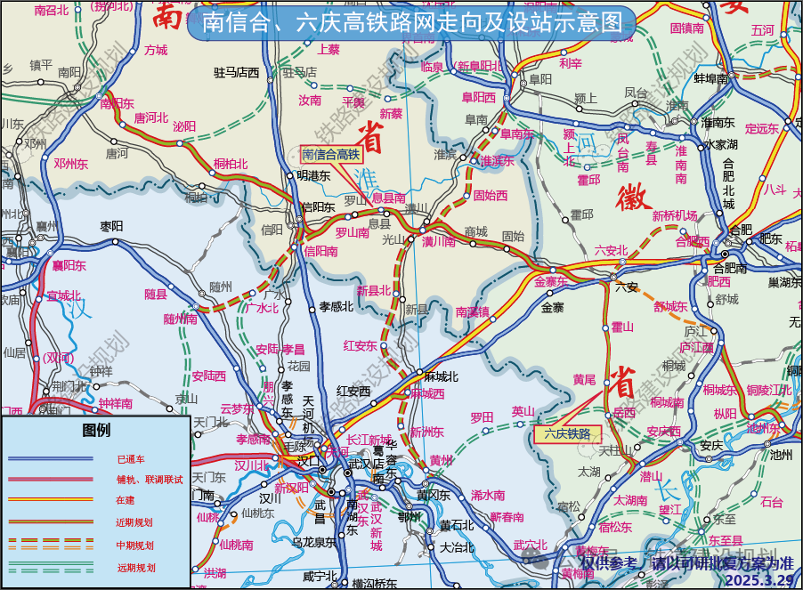 我省协同河南省已完成南信合高铁项目可研报告编制,正在衔接国铁集团组织可研审查;根据合武高铁相关站房初步设计批复,新建六安北站站房建筑面积按30000平方米控制,未设置存车线。(安徽省发改委3月28日)